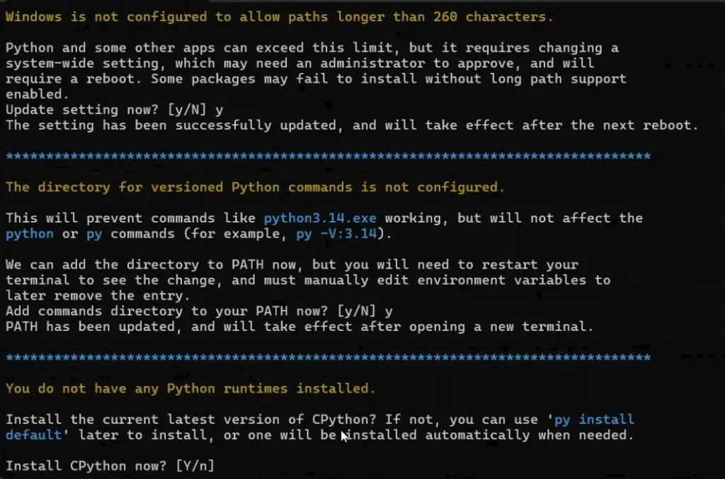 CPython を今すぐインストールしますか? [Y/n]