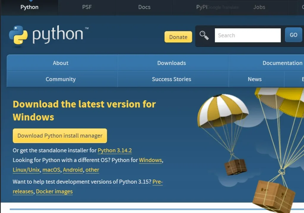 - Or get the standalone installer for Python 3.14.2(下の小さいリンク)