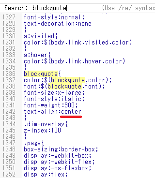 Ctrl + F を押し blockquote と入力すると 該当する文字がハイライトされるので探します。